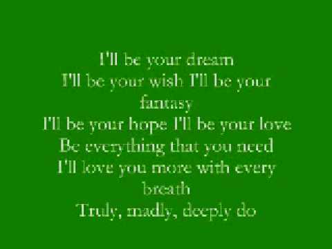 Truly Madly Deeply Lyrics }}- thanks for watching :) 200000 views - December 27th 2009. 100000 views - October 16th 2009. I'll be your dream I'll be your wish I'll be your fantasy I'll be your ...